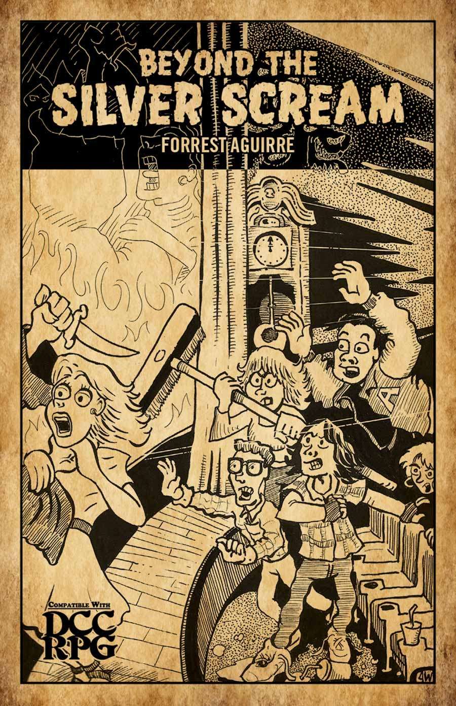 Beyond the Silver Scream by Forrest Aguirre is a Dungeon Crawl Classics adventure in which the PCs are high school kids in the 70s or 80s. The adventure starts in a movie theater and moves on to weirder places from there. I bought this at Gen Con 2016 (because games where you play as 80s kids are an easy sell for me), and I like the simple but fun details that go into making your zero-level kid.