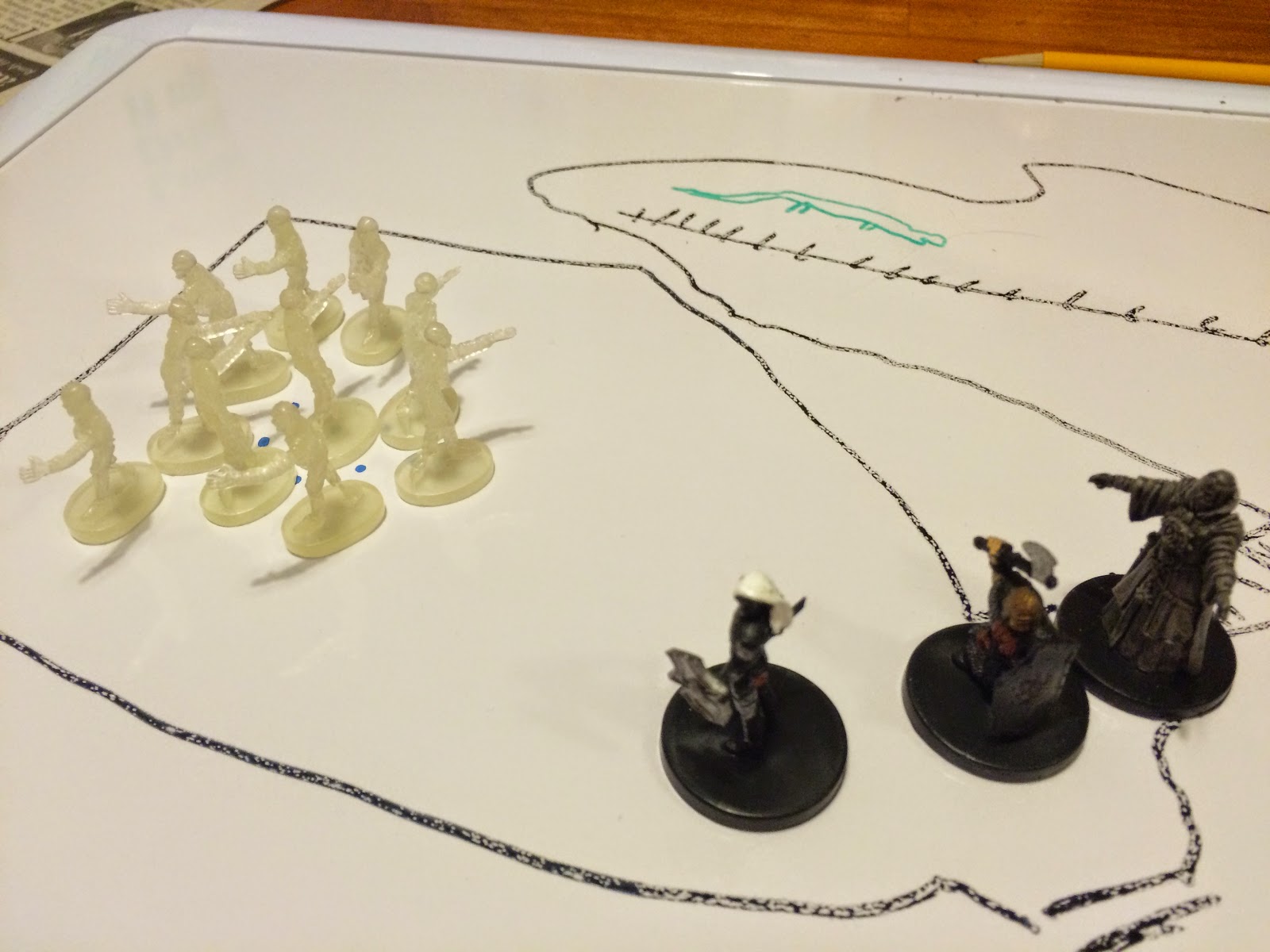 The prone figs on the right are bodies the PCs stacked to keep enemies out! |